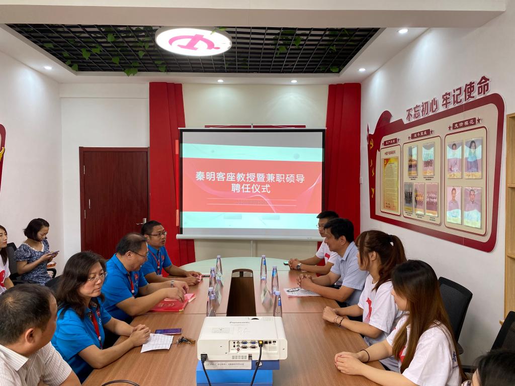 2020年9月20日上午,泗水县委常委、组织部长、青岛科技大学校友秦明客座教授暨兼职硕导聘任仪式在马克思主义学院党员活动室举行。青岛科技大学马克思主义学院党总支副书记、院长曹胜,副院长张运君、曲慧敏,山东城际轨道交通科技股份有限公司总经理张勇以及马院师生代表10人参加此次聘任仪式。仪式由张运君副院长主持。