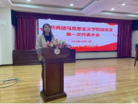 为教育引导广大青年团员坚定理想信念、同心同德,激发青年发展的蓬勃力量,确保正确工作方向不动摇,10月13日下午,马克思主义学院于学术报告厅举行共青团马克思主义学院团总支第一次代表大会。参加本次大会的有研究生班主任戴雪丽老师、郭江龙老师、孙倩倩老师和马院全体在校生。本次大会由孙倩倩老师主持。