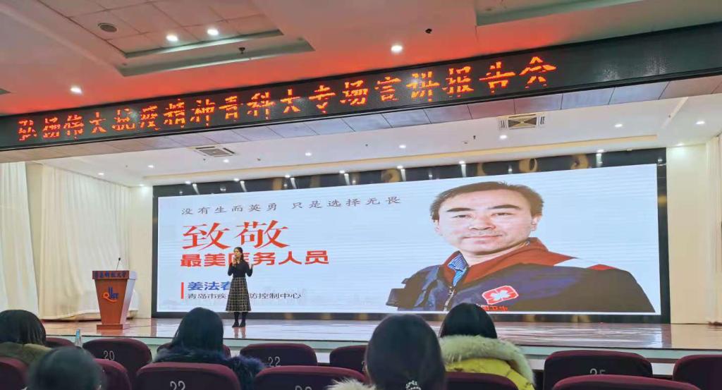 12月3号下午,由青岛市卫健委和青岛科技大学宣传部、团委、学生处、马克思主义学院联合主办的“聆听战疫故事 坚定使命担当”弘扬伟大的抗疫精神青科专场宣讲会于崂山校区第二报告厅顺利举行。马克思主义学院四位思政课教师带领300多名本科生聆听了报告。