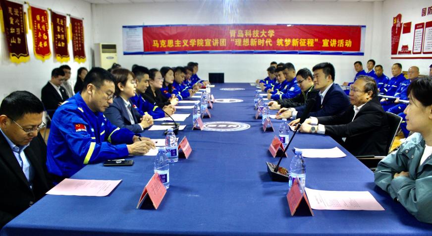 为迎接党的百年华诞,开启历史新征程,2021年4月10日上午,青岛科技大学马克思主义学院宣讲团与即墨区通济街道蓝天救援队联合开展了党史学习教育宣讲活动。共青团即墨区委员会副书记冯健、即墨区通济街道团委书记李俞超、纪工委副书记于佳佳、蓝天救援队全体队员,以及青岛科技大学团委副书记陈兵、研究生院学生教育管理科科长王垚、马克思主义学院院长曹胜、副院长张运君、研究生党支部书记郭江龙和马克思主义学院宣讲团成员参加此次活动。