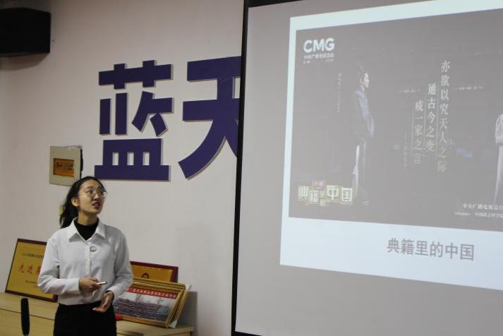 宣讲团成员郝彤以《坚定文化自信》为主题,介绍了在党的百年发展历程中,始终重视党的文化领导力建设,始终把促进文化人才参与作为巩固和发展党的文化领导力的关键。作为新时代的青年,我们要自信大方的讲好中国故事,传播中国声音,提升民族文化自信心。