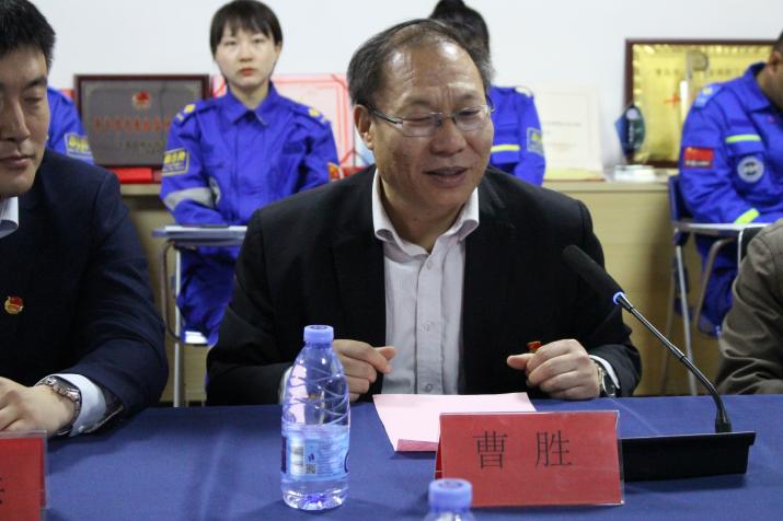 青岛科技大学马克思主义学院曹胜院长讲话并指出,蓝天救援队队员们参与的救援活动体现了为人民请命、为人民服务的志愿服务精神,希望通过此次宣讲活动将理论掌握转化为实践进步和知识完善的动力。在学党史中坚定理想信念、在悟思想中感知真理价值、在新征程中勇担时代重任。