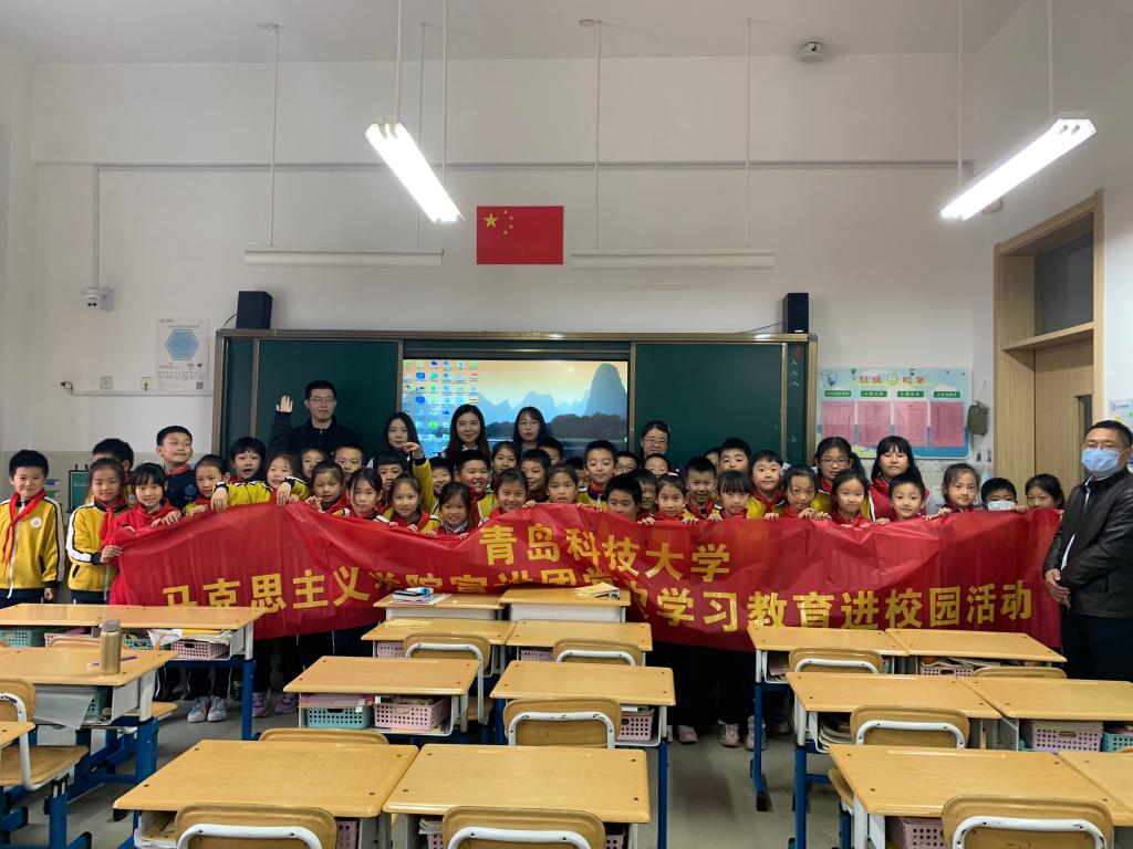 4月23日下午,学院副院长张运君带领青岛科技大学马克思主义学院宣讲团走进崂山区育才学校,开展题为“讲好党史故事 传承红色基因”的党史学习教育宣讲活动,学校党委宣传部王文燕老师、宣讲团成员徐圣权、韩新怡、尚培筠、张美参加活动。