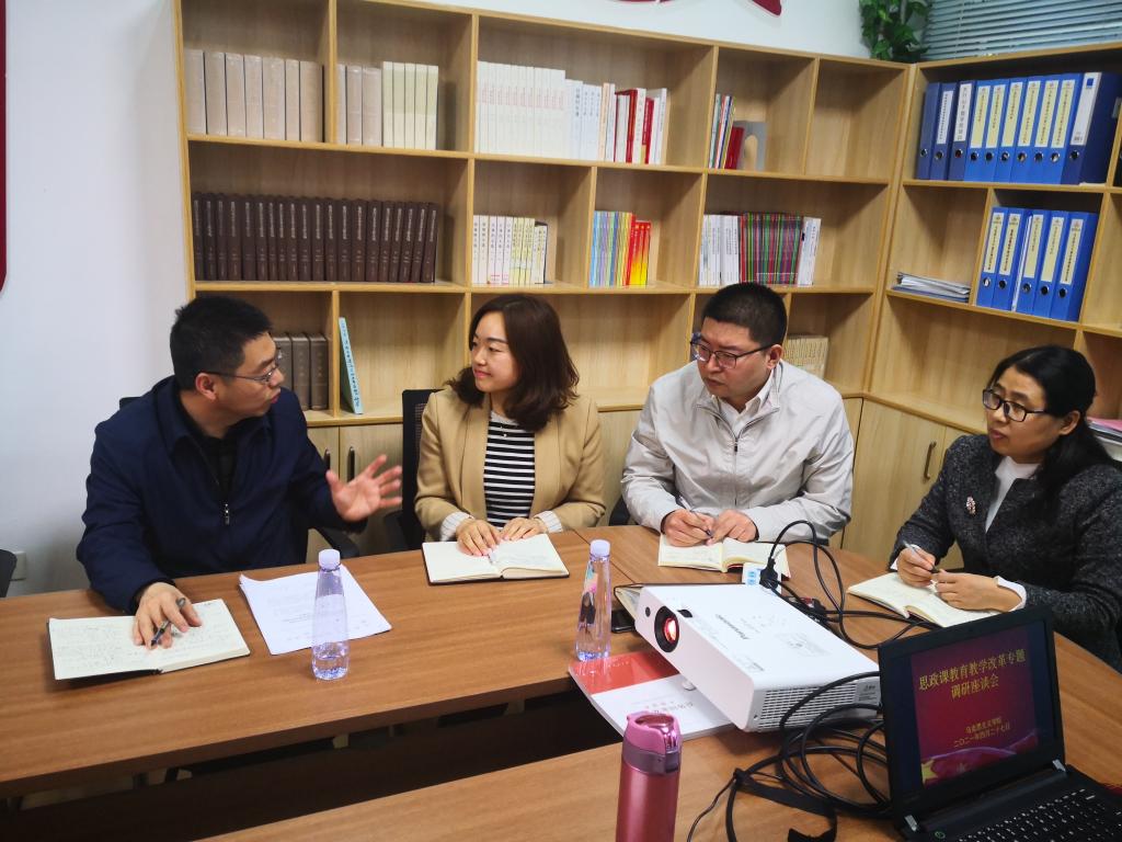 与会教师代表围绕思政课课程建设、教学运行、人才引进、制度管理等方面展开讨论。吕万翔充分肯定了教师们对于思政课教育教学改革的积极态度和宝贵建议,并与所联系的马丽娟、刘林、赵青霞三位思政课教师进行了深入交流。教务处副处长尚猛、付鹏程分别就我校思政课和小班化教学改革和混合式教学改革工作方案进行交流发言。