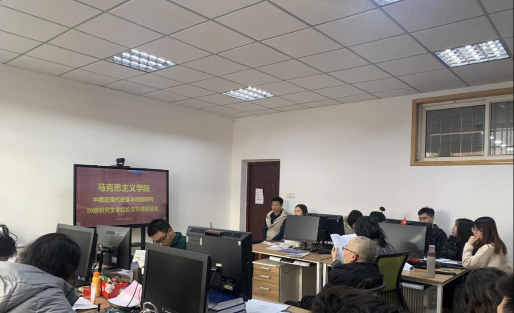 为督促和引导学院研究生顺利开展学位论文写作,进一步提高研究生培养质量,根据学校研究生院和学院的部署安排,马克思主义学院中国近现代史基本问题学科方向2020级硕士研究生学术论文开题报告会于11月23日在中国近现代史教研室进行。参加开题的评审专家有:李晓晨教授、刘庆副教授、王建美副教授、宗芳副教授、郭江龙博士、付长睿博士,21级中国近现代史基本问题方向研究生旁听。