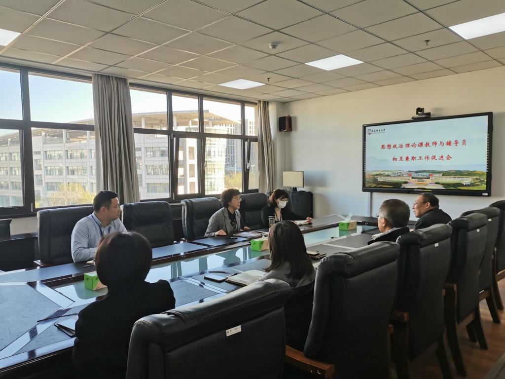 马克思主义学院院长曹胜、党委学生工作部副部长王丽就两支队伍相互兼职教师工作任务、专业匹配、构建“大思政”格局,更好推进两支队伍相互兼职提出了意见建议。
