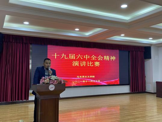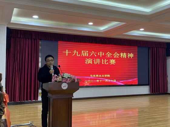 为深入贯彻党的十九届六中全会精神,马克思主义学院工会于2021年11月30日下午在学院报告厅举办了学习党的十九届六中全会精神演讲会。校工会主席郭曰铎,校宣传部李粟,马克思主义学院党总支书记张鸣、院长曹胜、副院长曲慧敏以及全体工会成员参加此次活动。本次活动由学院工会主席赵东玉和学院工会文体委员姜竹青共同主持。