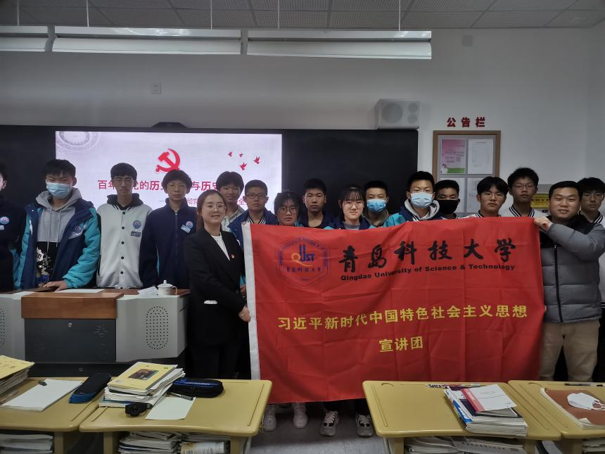 为进一步宣传贯彻党的十九届六中全会精神,引导广大青年学生厚植爱党、爱国、爱社会主义的情感,让红色基因、革命薪火代代传承。2021年12月23日,青岛科技大学习近平新时代中国特色社会主义思想宣讲团走进山东省轻工工程学校,开展题为“学习贯彻党的十九届六中全会精神”的宣讲活动,宣讲团成员谭艺参加活动。