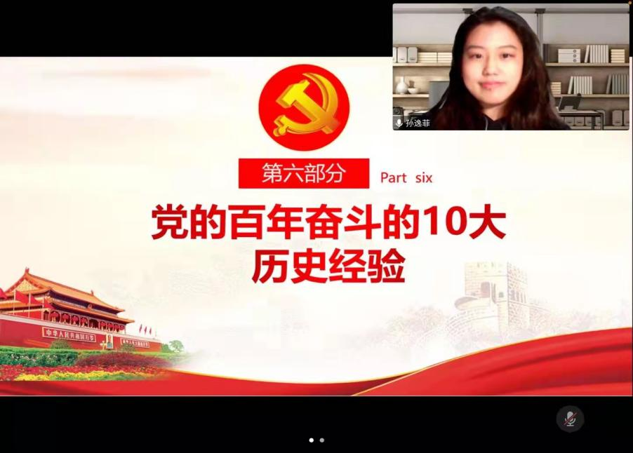 孙逸菲分析了党的百年奋斗的十大历史经验,鼓励同学们以史为鉴、开创未来,埋头苦干、勇毅前行,为实现第二个百年奋斗目标、实现中华民族伟大复兴的中国梦不懈奋斗。