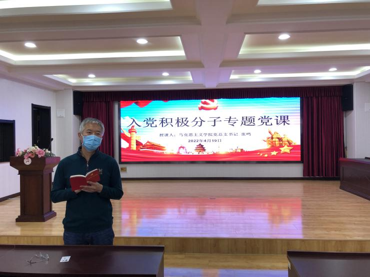 2022年4月19日下午,学院党总支书记张鸣面向全院学生入党积极分子和党员发展对象,以“坚定理想信念,端正入党动机,做新时代青年共产主义者”为题讲授党课,旨在进一步加强对入党积极分子的思想教育,帮助他们端正入党动机,树立为共产主义事业奋斗终身的信念。