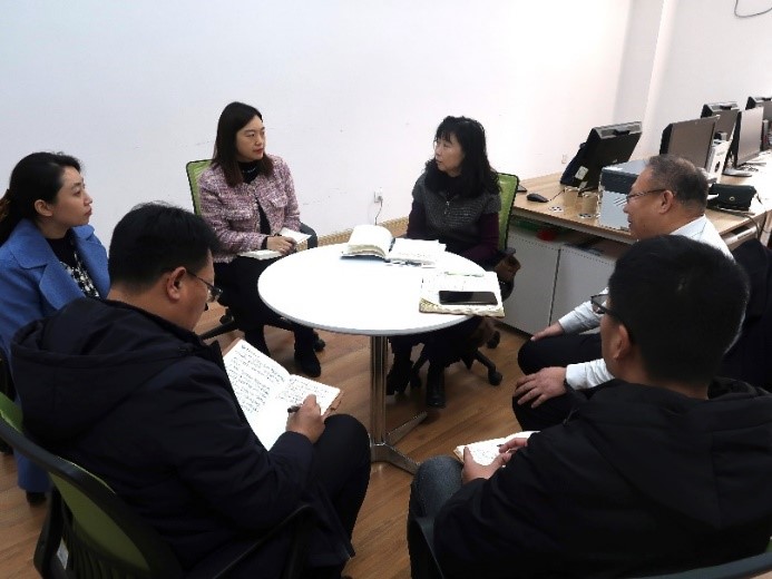 会上,院长曹胜、党总支书记李真就学院相关工作进行了简要汇报,郭士民、马丽娟两位老师分别汇报了自己教学、科研方面的工作,并就工作开展情况及相关问题展开交流与讨论。