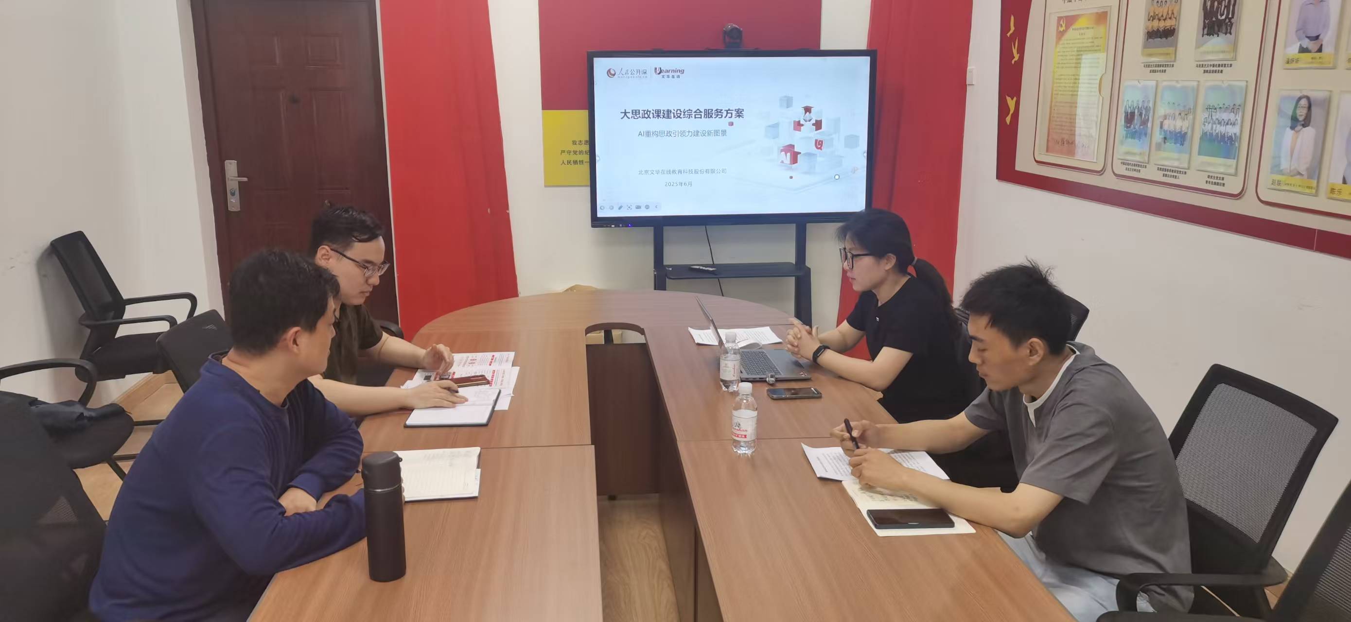 为深化校企合作、推动共赢发展,6月13日上午,北京文华在线教育科技股份有限公司赴青岛科技大学马克思主义学院开展合作交流。北京文华在线山东区域经理于亚楠、张文敏,马克思主义学院副院长郭江龙、教师桑朝阳及学院双创竞赛团队成员参加了本次会议。