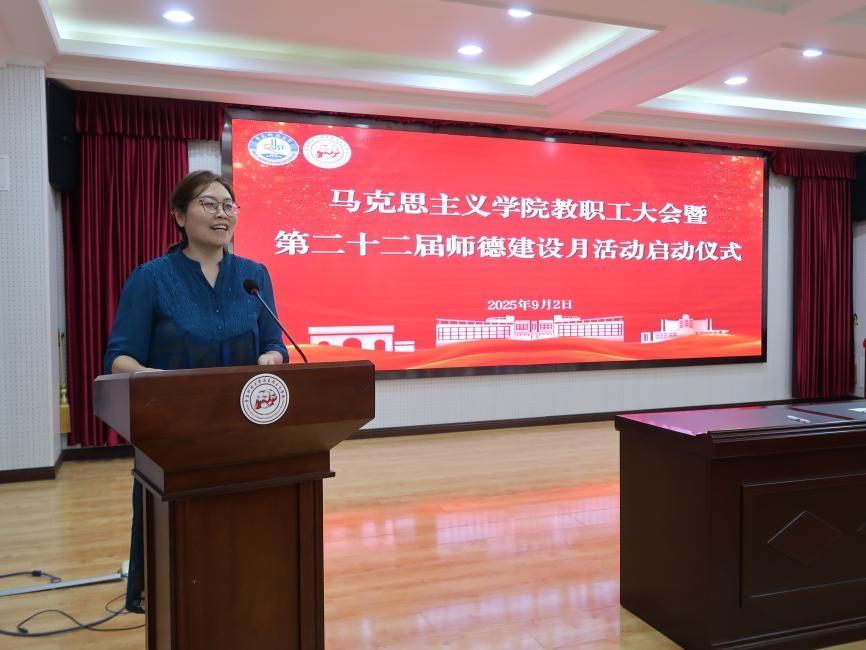 为深入学习贯彻党的创新理论,全面统筹学院新学期学科建设、教育教学与人才培养等各项任务,明确工作方向、凝聚发展共识,确保新学期各项工作开好局、起好步,9月2日下午,马克思主义学院教职工大会暨第二十二届师德建设月启动仪式在学院报告厅召开,会议由学院党总支书记李卉主持,学院全体教职工参加会议。
