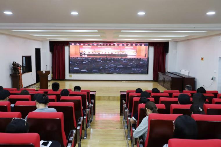 与会人员观看了青岛科技大学2025年教师节庆祝大会主会场的直播。在大会的表彰环节,我院教师曹胜获评2024年山东省高等学校教学名师、2024年山东省“三下乡”社会实践优秀指导教师、青岛市市级教学成果奖二等奖;郭江龙获评第五届最美教师;王建美获评2024年山东学校优秀思政课教师、第四届教书育人楷模;田雨获评泰山学者青年专家、青岛市第38次社科优秀成果奖三等奖;宗芳获评山东省2025年度普通高等学校教师教学创新大赛二等奖;潘妍妍获评2024年度青岛科技大学三八红旗手;李霞、薛君、闫鑫淇、赵东玉、宗芳获评青岛科技大学2024年度先进工作者;刘庆获评2025年从事教育工作满30年教职工。马克思主义基本原理教研室、中国近现代史教研室获青岛科技大学2024年度先进集体,中国近现代史教研室获评2024年度青岛科技大学教育先锋号。
