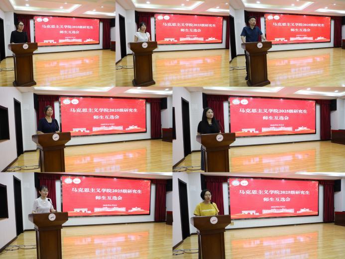 随后,思想政治教育、马克思主义中国化研究、中国近现代史基本问题研究、马克思主义基本原理四个方向的研究生导师围绕自身研究领域、科研成果、项目经验及学生培养支持展开介绍。会后,新生结合个人兴趣与导师研究方向,现场填写互选志愿表,完成双向选择。