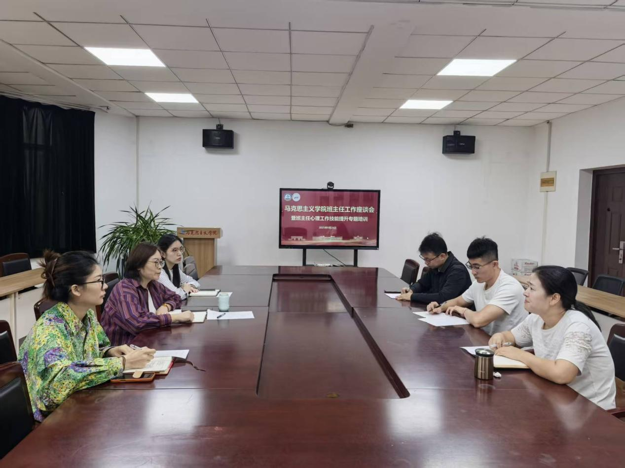 为进一步强化班主任队伍建设,提升班主任育人能力与心理工作专业素养,切实筑牢学生成长成才保障线,2025年9月24日上午,青岛科技大学马克思主义学院在学院2010会议室组织召开班主任座谈会暨班主任心理工作技能提升专题培训。学院党总支书记李卉、学生工作负责人郭佩佩、辅导员陈晨以及班主任单森、冯斐、王泽方共同参会。
