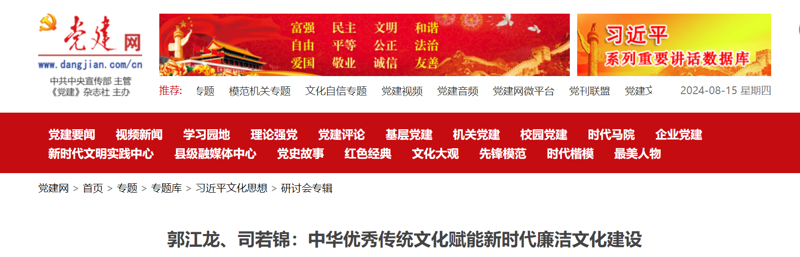 新时代新征程,加强廉洁文化建设是全面从严治党的必然要求,也是推动社会风气持续向好的重要途径。中华优秀传统文化蕴含着丰富的廉洁思想、高尚的道德情操和深远的历史智慧,为新时代廉洁文化建设提供了强大的精神动力和深厚的文化滋养。