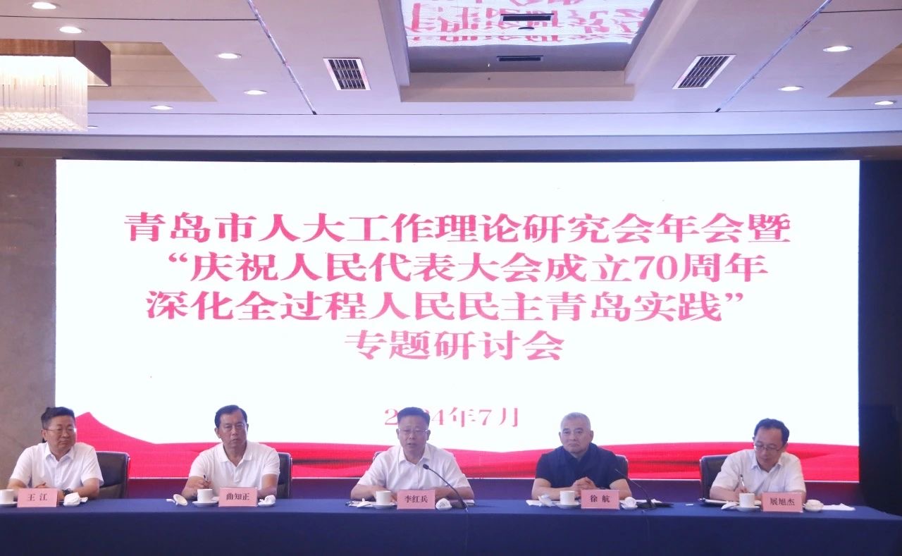 7月5日,青岛市人大工作理论研究会年会暨“庆祝人民代表大会成立70周年 深化全过程人民民主青岛实践”专题研讨会在青岛市人大代表教育保障中心举行。青岛市人大常委会副主任李红兵出席会议并讲话。
