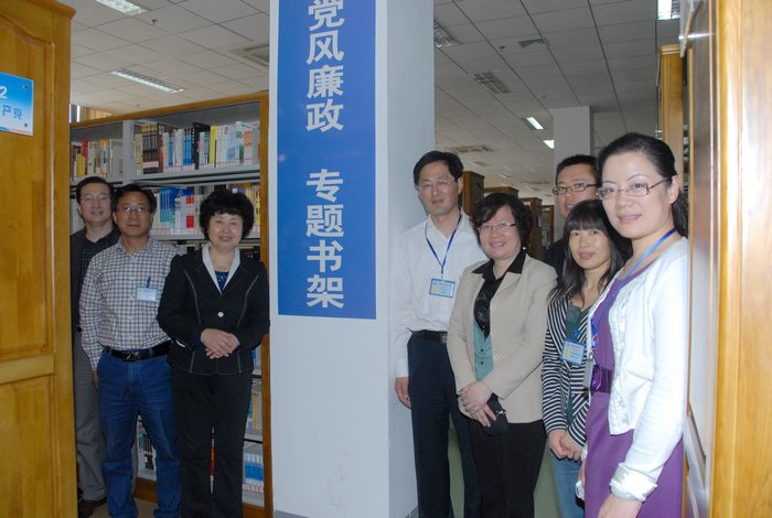 5月14日上午,党风廉政专题书架揭牌仪式在图书馆综合书库举行,党委副书记、纪委书记王瑞芳出席仪式并讲话,纪委监察室、组织部、宣传部、图书馆负责人及图书馆部分教职工参加了仪式。