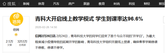 搜狐网、半岛网、半岛都市报、青岛早报:停课不停学!驻青高校迎网上开学,400余教师变“主播”