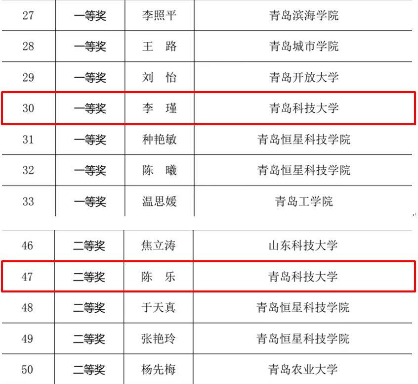 近日,中共青岛市委教育工作委员会公布了“青岛市党的二十届三中全会精神融入课程教学”教学设计比赛获奖名单,青岛科技大学在此次比赛中荣获佳绩。我校马克思主义学院教师在思政课程(本科)组中获得多项奖项,其中王昭老师、王美丽老师荣获特等奖,李瑾老师荣获一等奖,郭江龙、陈乐、孙倩倩、以及刘林老师荣获二等奖。