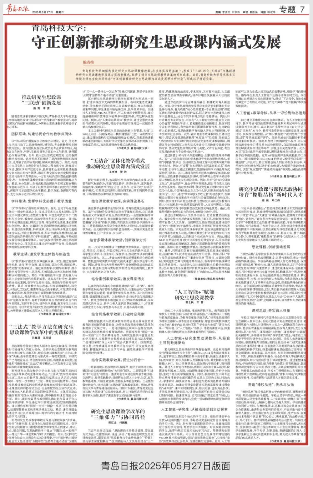 【成果速递】青岛日报:青岛科技大学:守正创新推动研究生思政课内涵式发展