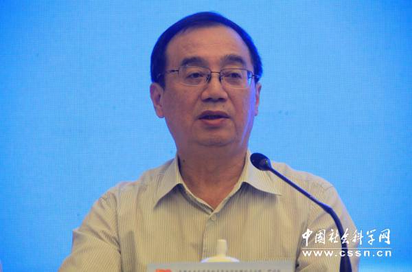 复旦大学教授、上海市社会科学界联合会原党组副书记、专职副主席桑玉成作主旨报告。本网记者张杰摄。