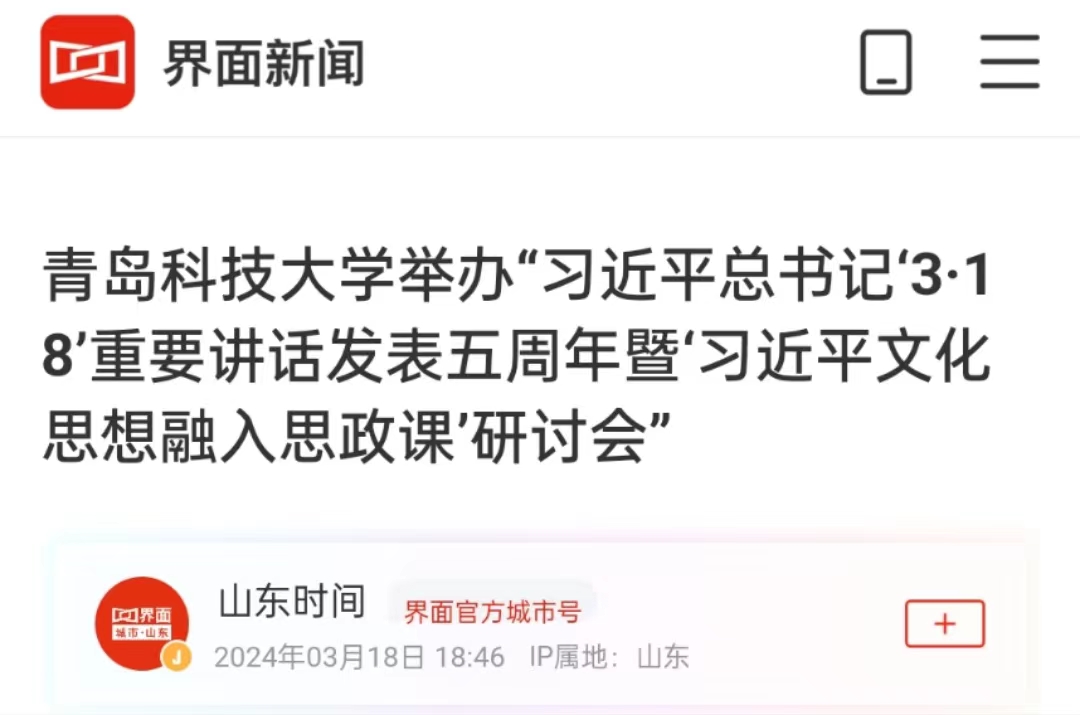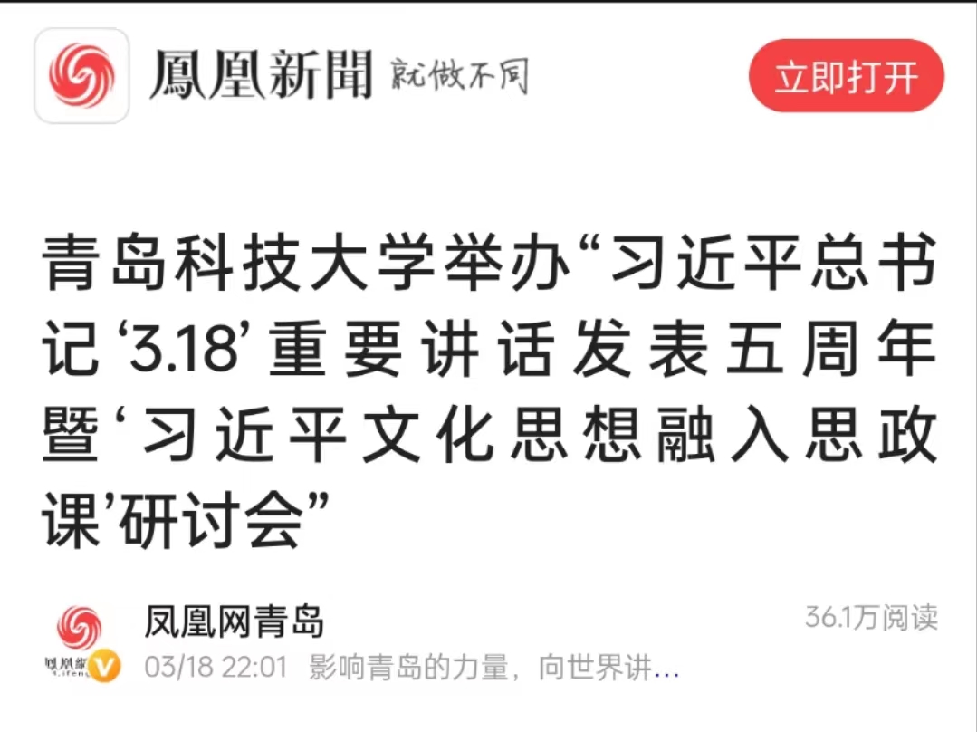 凤凰新闻等:青岛科技大学举办“习近平总书记‘3.18’重要讲话发表五周年暨‘习近平文化思想融入思政课’研讨会 ”