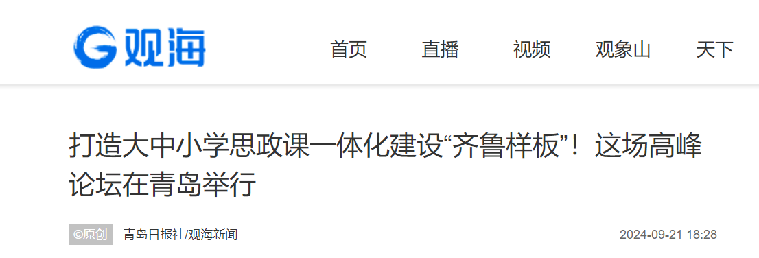 山东省大中小学思政课一体化建设指导中心在改革创新中稳步推进、逐步深化,思政育人新样态加速形成。一体化共同体将从方向上用好党建引领引擎,纵向破除学段壁垒,实现各学段教学内容有序进阶、协同推进,横向搭建互联互通思政教育平台,将一体化共同体建设成为共商、共建、共享的全省大思政课教学资源库,进一步加强思想政治教育与思政课一体化设理论研究、实践探索和服务引领。(青岛日报/观海新闻记者 王世锋)