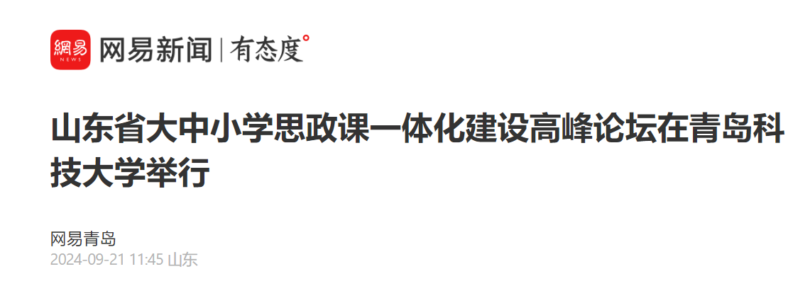 为深入学习贯彻党的二十届三中全会精神,深入推进党的二十届三中全会精神融入大中小学思政课,全面落实山东省教育厅印发的《关于进一步推进全省大中小学思政课一体化建设的工作方案》,进一步加强理论研讨,深入交流经验做法,深化思政课教育教学改革,2024年9月21日,第四届山东省大中小学思政课一体化建设高峰论坛暨山东省大中小学思政课一体化共同体工作推进会在青岛科技大学举行。会议由山东省教育厅指导,教育部大中小学思政课一体化共同体(山东)、山东省大中小学思政课一体化建设指导中心、全国高校思政课“手拉手”集体备课中心(山东师范大学-山东)主办,青岛科技大学、青岛二中承办。来自复旦大学、山东师范大学、曲阜师范大学、青岛科技大学、山东财经大学等教育部大中小学思政课一体化共同体成员单位的领导专家,以及省内高校部分马院负责人和各地市基础教育领域的专家学者,共200余人参加会议。会议开幕式由青岛科技大学党委常委、宣传部(教师工作部)部长张洪坤主持,山东省教育厅(省委教育工委)思政处(宣教处)处长陈成标、副处长仇宝艳,青岛科技大学党委常委、副校长罗细亮,复旦大学特聘教授、教育部“长江学者”特聘教授刘红凛,教育部大中小学思政课一体化建设专家指导组成员高保卫、冀萍等领导专家出席了本次会议。