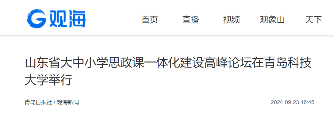 9月21日,第四届山东省大中小学思政课一体化建设高峰论坛暨山东省大中小学思政课一体化共同体工作推进会在青岛科技大学举行,旨在深入推进党的二十届三中全会精神融入大中小学思政课,全面落实山东省教育厅印发的《关于进一步推进全省大中小学思政课一体化建设的工作方案》,进一步加强理论研讨,深入交流经验做法,深化思政课教育教学改革。
