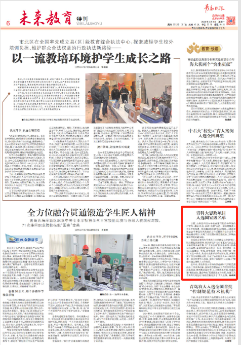 青岛日报:青科大思政项目入选国家级名单