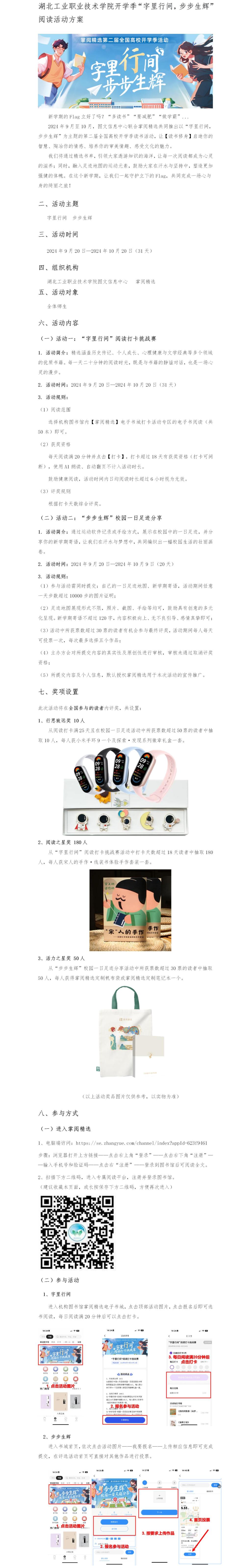 湖北工业职业技术学院开学季“字里行间,步步生辉”阅读活动方案