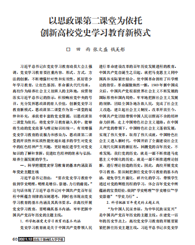 《山东干部函授大学学报(理论学习)》:以思政课第二课堂为依托 创新高校党史学习教育新模式