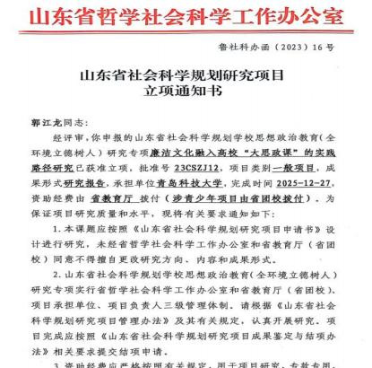 山东省社科规划思政课专项课题: “廉洁文化融入高校‘大思政课’建设的实践路径研究”