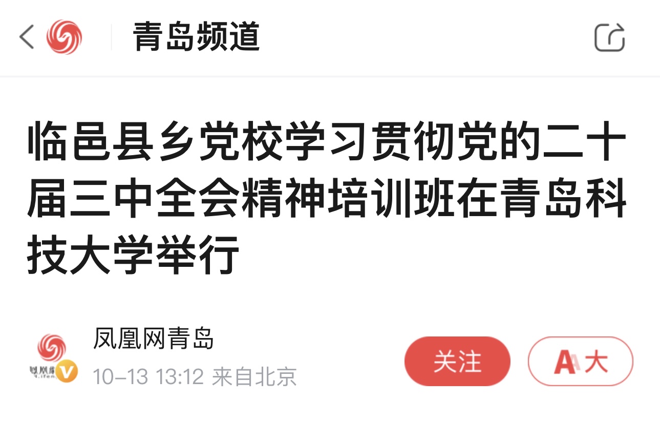 凤凰网青岛:临邑县乡党校学习贯彻党的二十届三中全会精神培训班在青岛科技大学举行