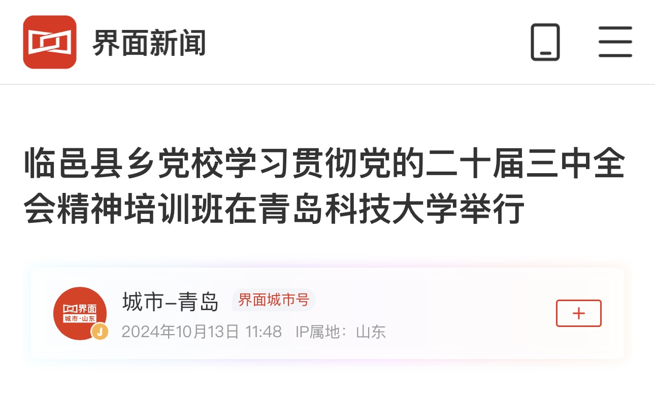 界面新闻:临邑县乡党校学习贯彻党的二十届三中全会精神培训班在青岛科技大学举行