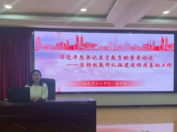 学院工会主席姜竹青博士从内容概要、核心要义、实践成就、重大意义等方面作“习近平总书记关于教育的重要论述”的辅导报告。她指出,习近平总书记关于教育的重要论述是中国特色社会主义教育理论发展的最新成果,是建设高质量教育体系、建成教育强国的指导思想和根本遵循,广大教师要以树人为核心、以立德为根本,进一步健全立德树人落实机制,努力培养德智体美劳全面发展的社会主义建设者和接班人。
