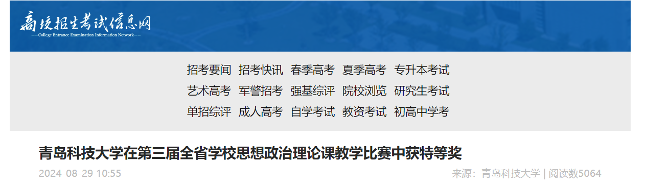 高校招生考试信息网:青岛科技大学在第三届全省学校思想政治理论课教学比赛中获特等奖