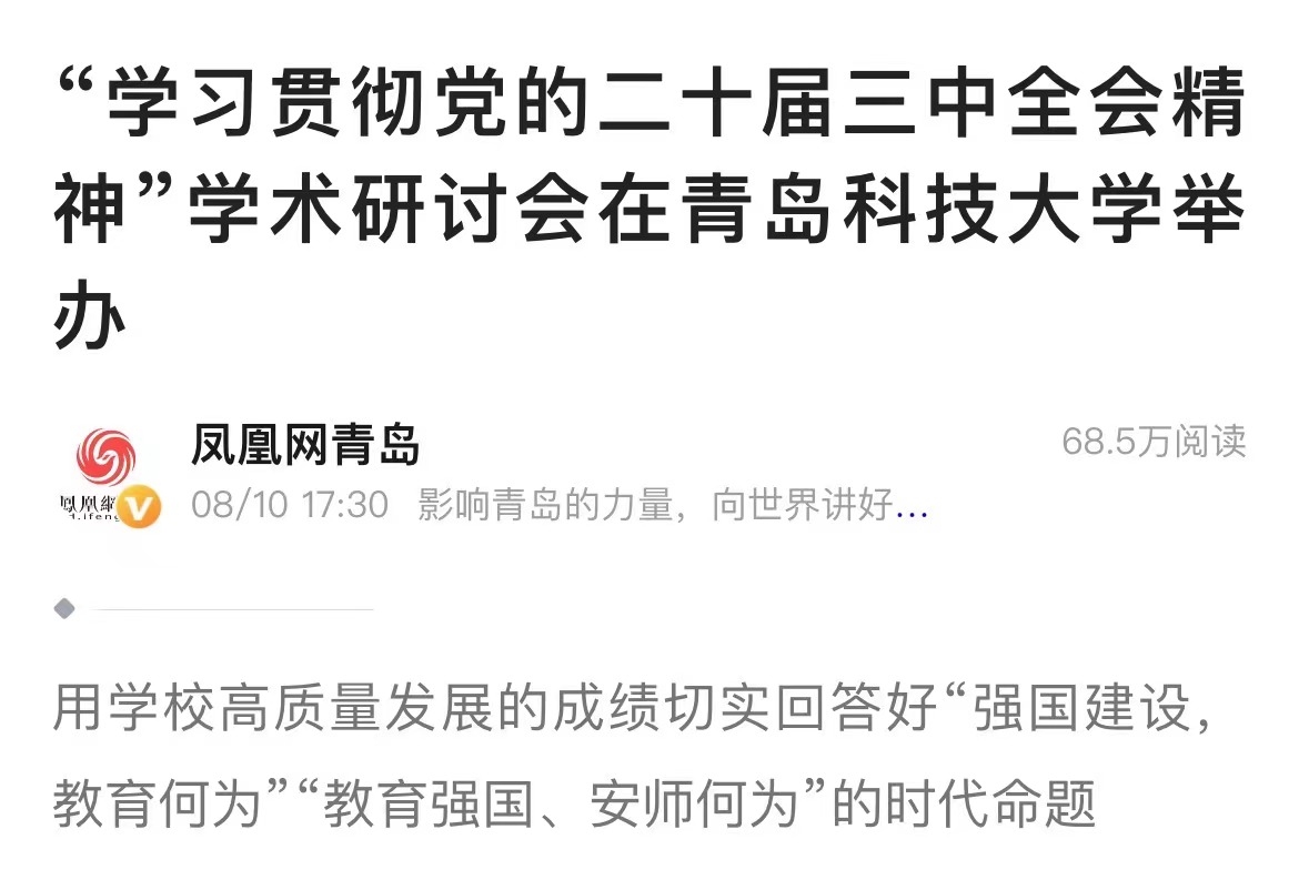 凤凰网青岛:“学习贯彻党的二十届三中全会精神”学术研讨会在青岛科技大学举办