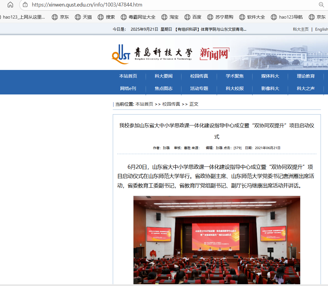 20210621青岛科技大学:我校参加山东省大中小学思政课一体化建设指导中心成立暨“双协同双提升”项目启动仪式