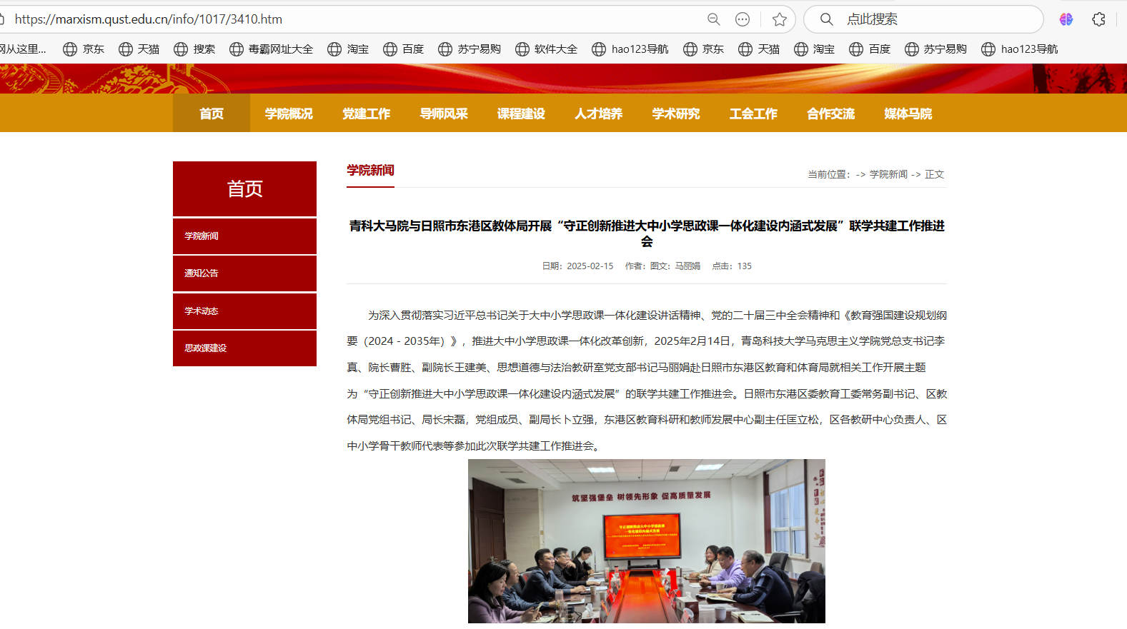 20250215凤凰网青岛:青科大马院与日照市东港区教体局开展“守正创新推进大中小学思政课一体化建设内涵式发展”联学共建工作推进会