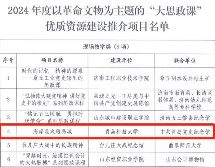山东省“大思政课”优质资源建设推介项目现场教学类:海岸星火耀岛城